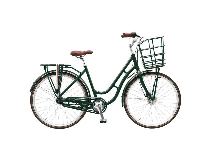 Fine detaljer som designskærm, bagagestropper og farvet kurv fuldender cyklens look og gør samtidig turen mere bekvem.